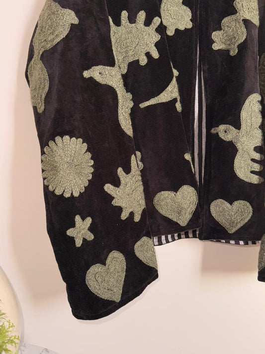 Velvet Kantha Patchworked Embroidery Animal Print Jacket