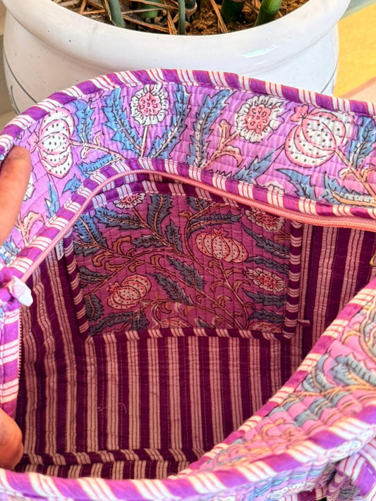 Blockprinted Boho set of 3 gifting pouch ,Toiletary ,Cosmetic bag