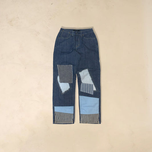 Patchworked baggy denim