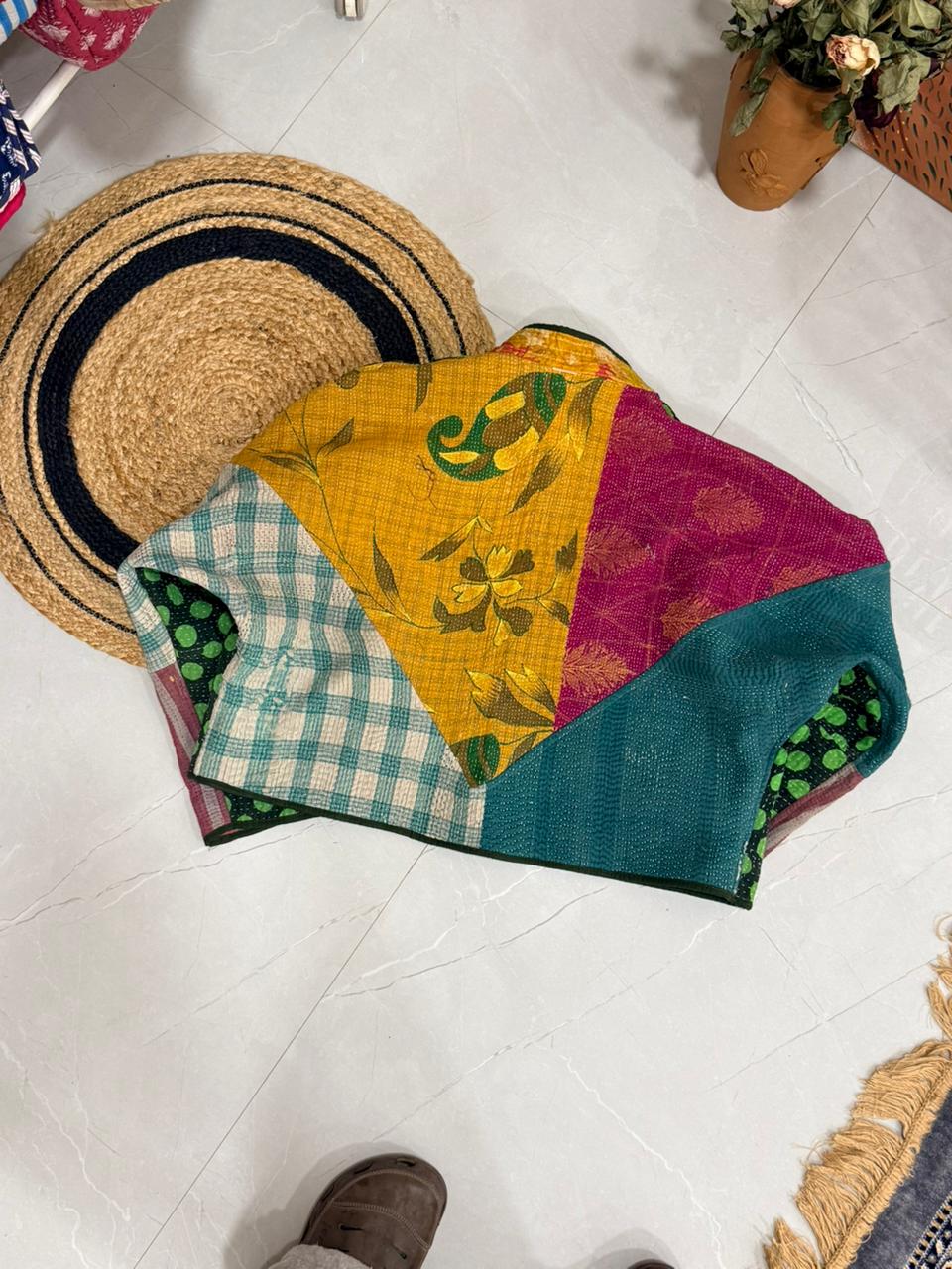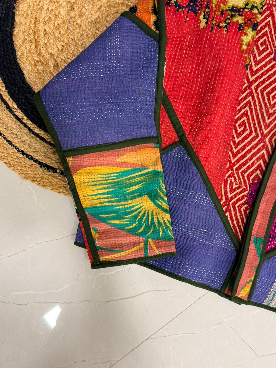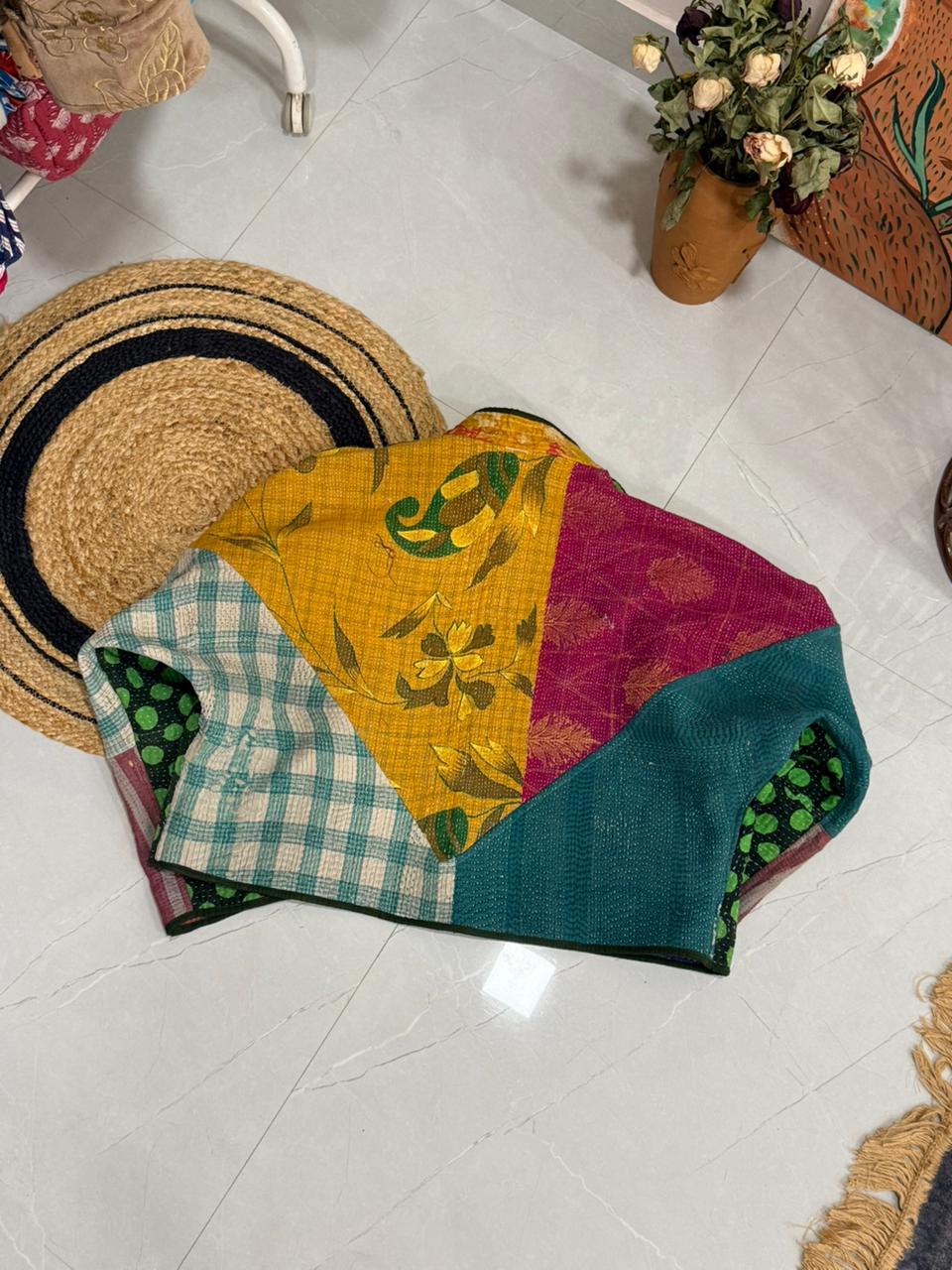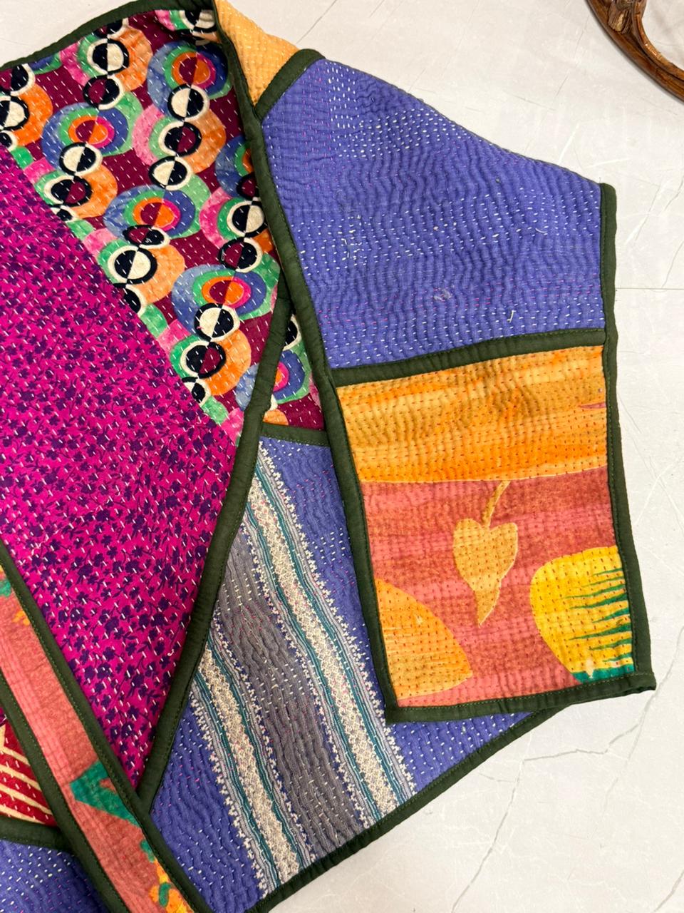 (Made out of vintage bedsheets on which later kantha work is done!!)