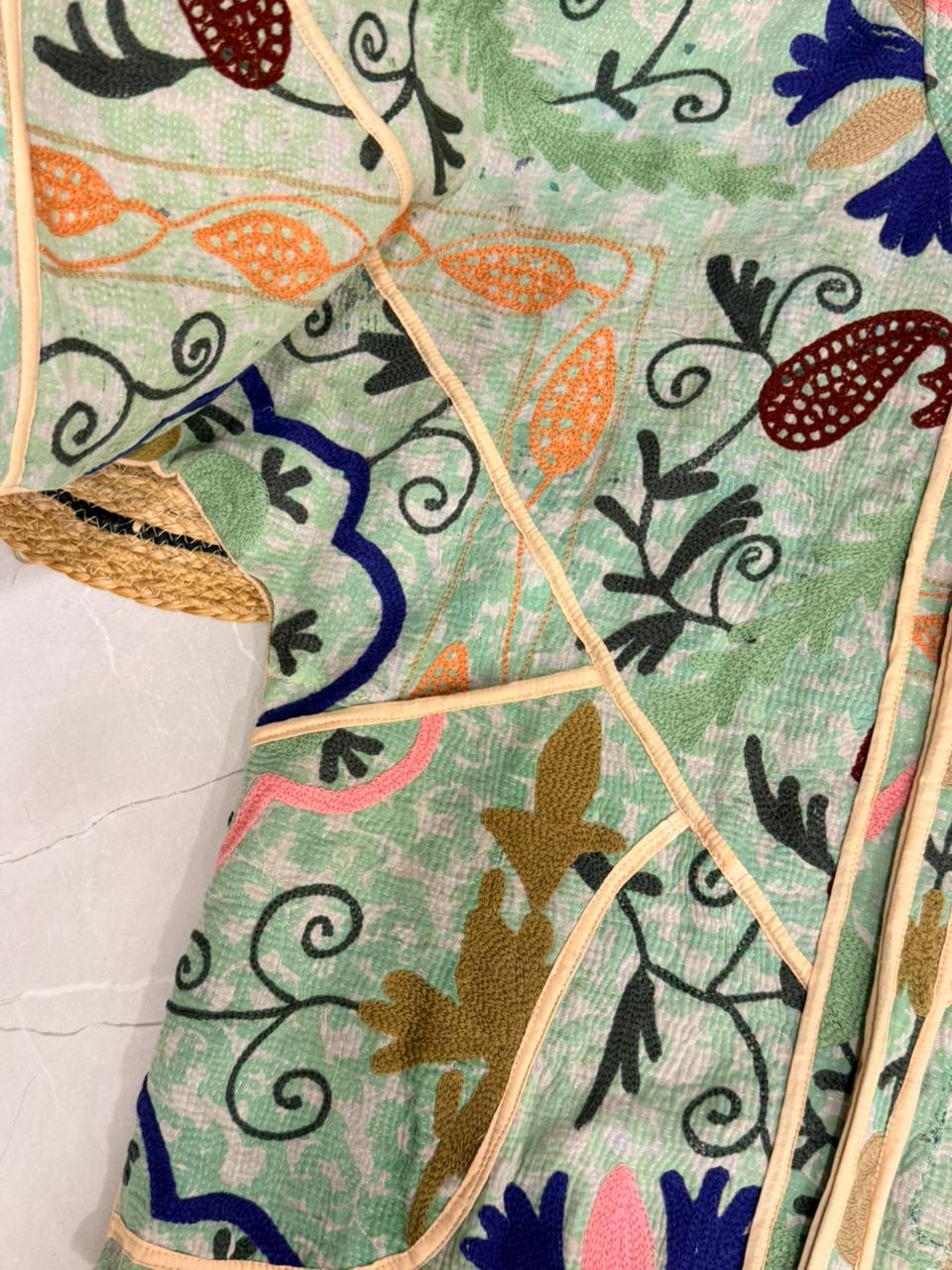 (Made out of vintage bedsheets on which later kantha work is done!!)