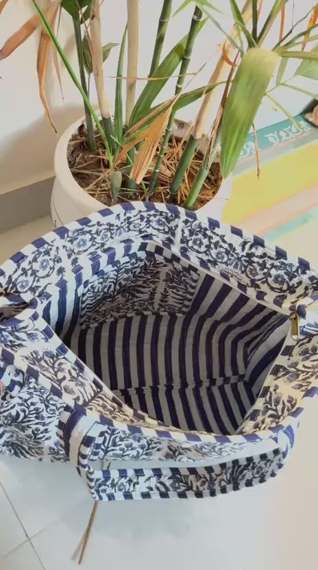 The Indian Hand Block Printed Cotton Quilted Women's Handbags from Rajasthan India. This Handbag is completely Indian Printed on good quality cotton.
