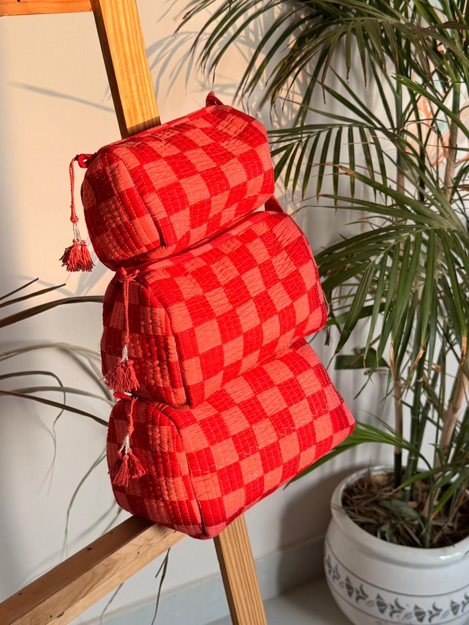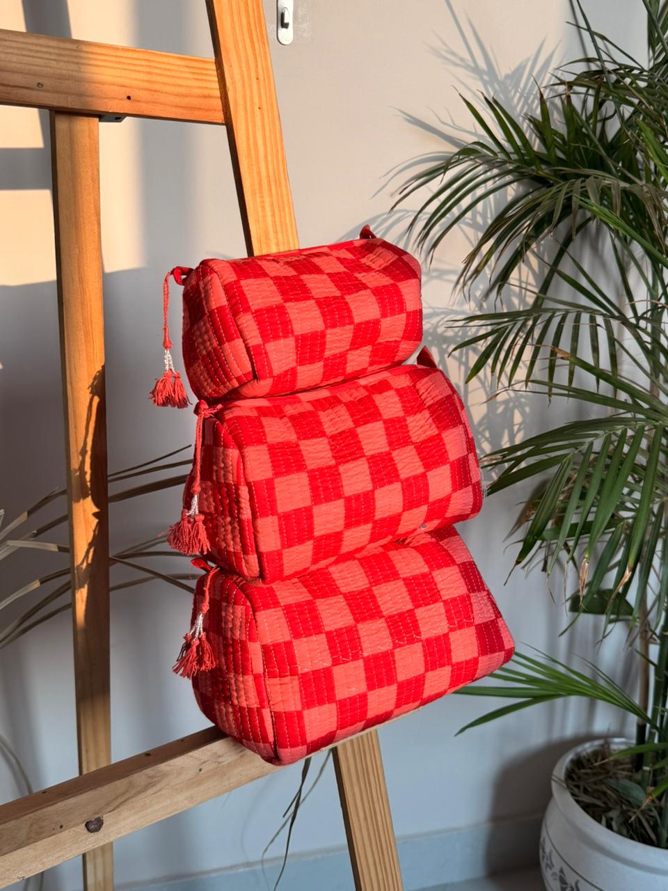 Add a touch of artisan elegance with our Hearts embroider Kantha Cotton Embroidered Toilteries pouches , crafted by skilled local artisans of India. This unique pouch features traditional Kantha stitching combined with intricate white cotton floral embroidery, creating a stunning monochrome contrast.