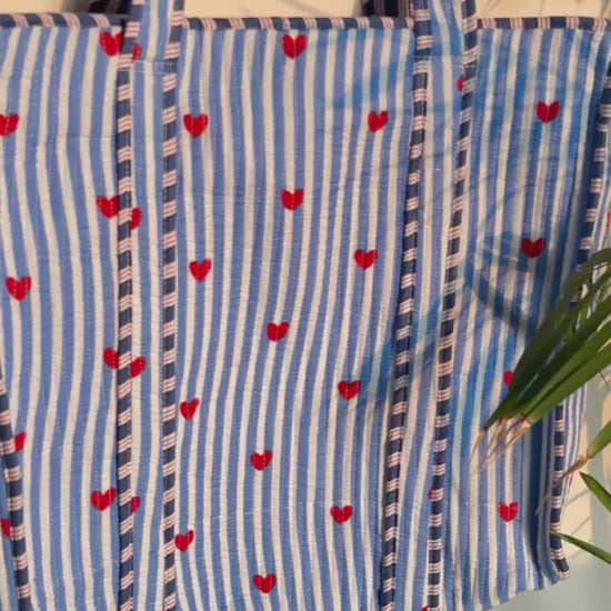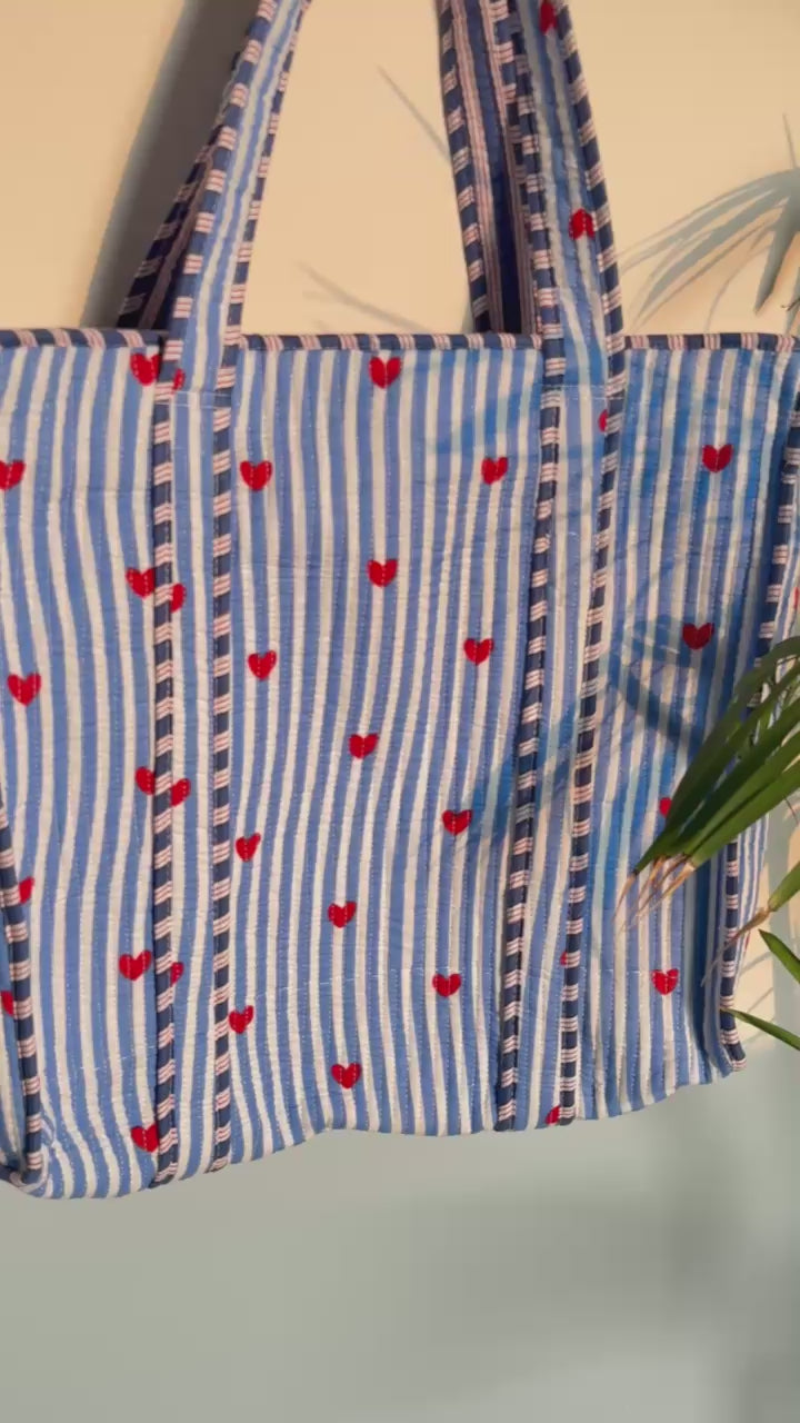 Cotton quilted travel Bag made by Indian Artisans, this cotton quilted shopping bag is totally unique and multi purpose. Use this for your grocery or as a travel bag. Perfect to suit all.
