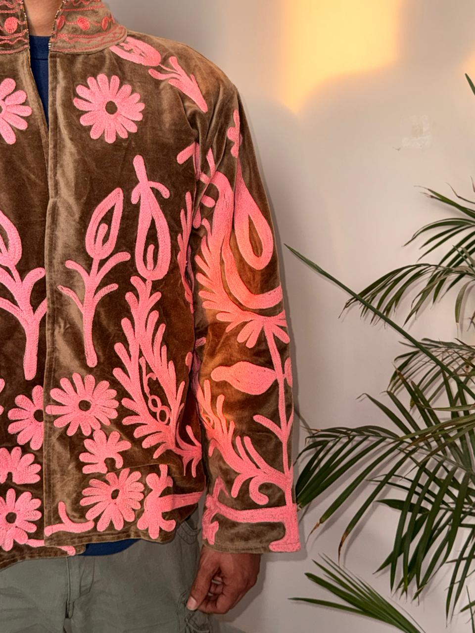 Velvet Brown Pintresty Swan Patchworked Jacket
