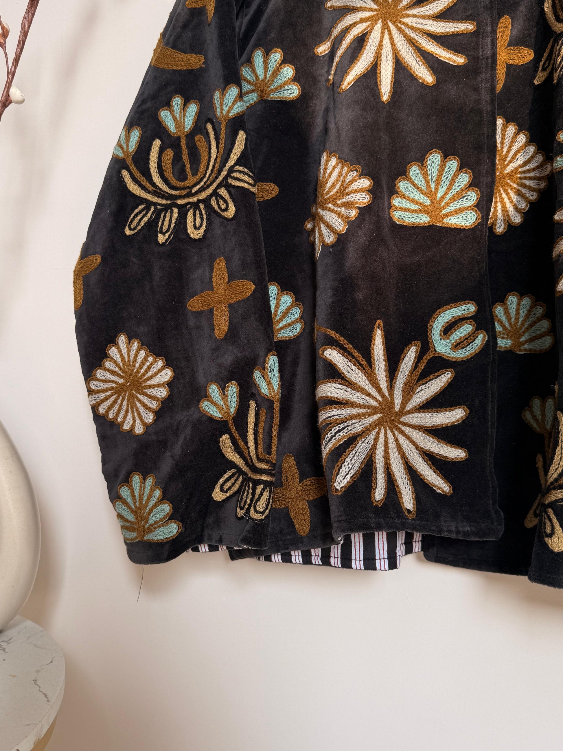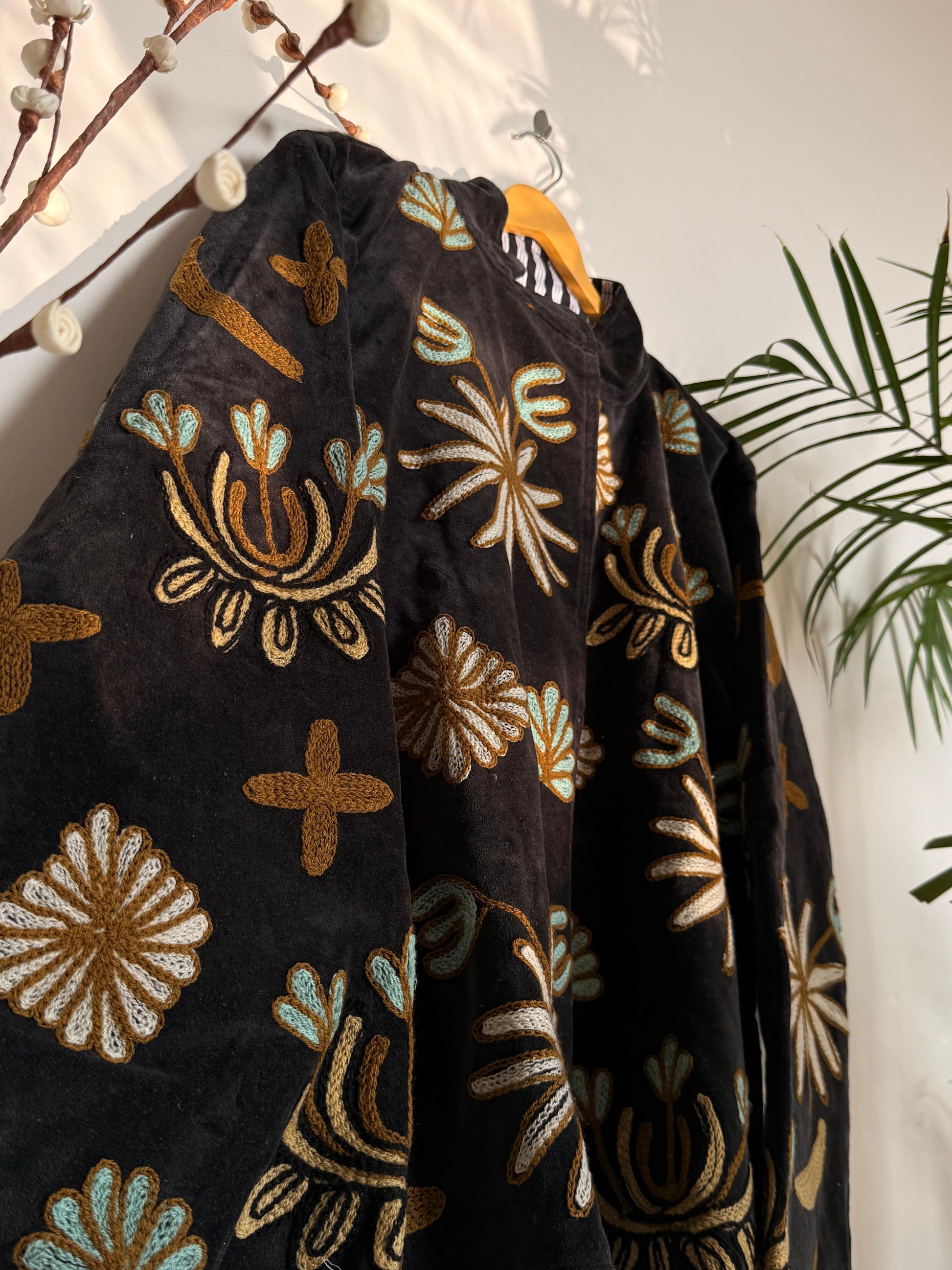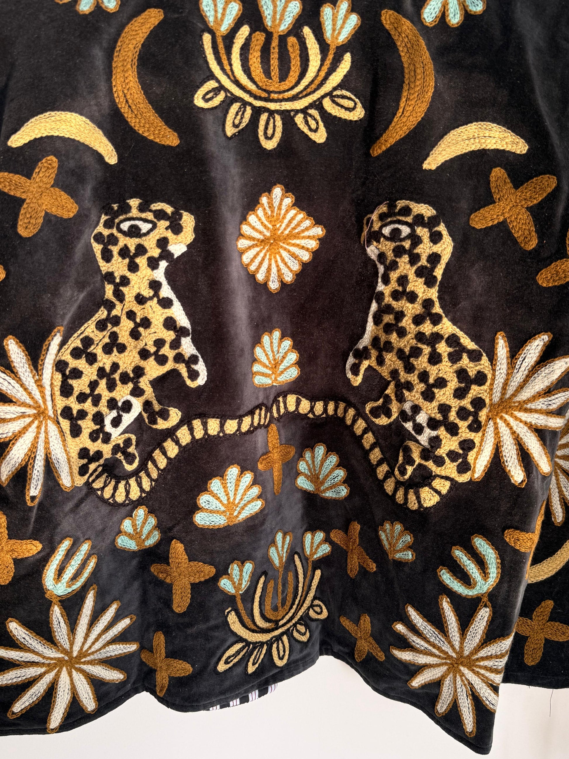 Velvet Kantha Patchworked Embroidery Animal Print Jacket